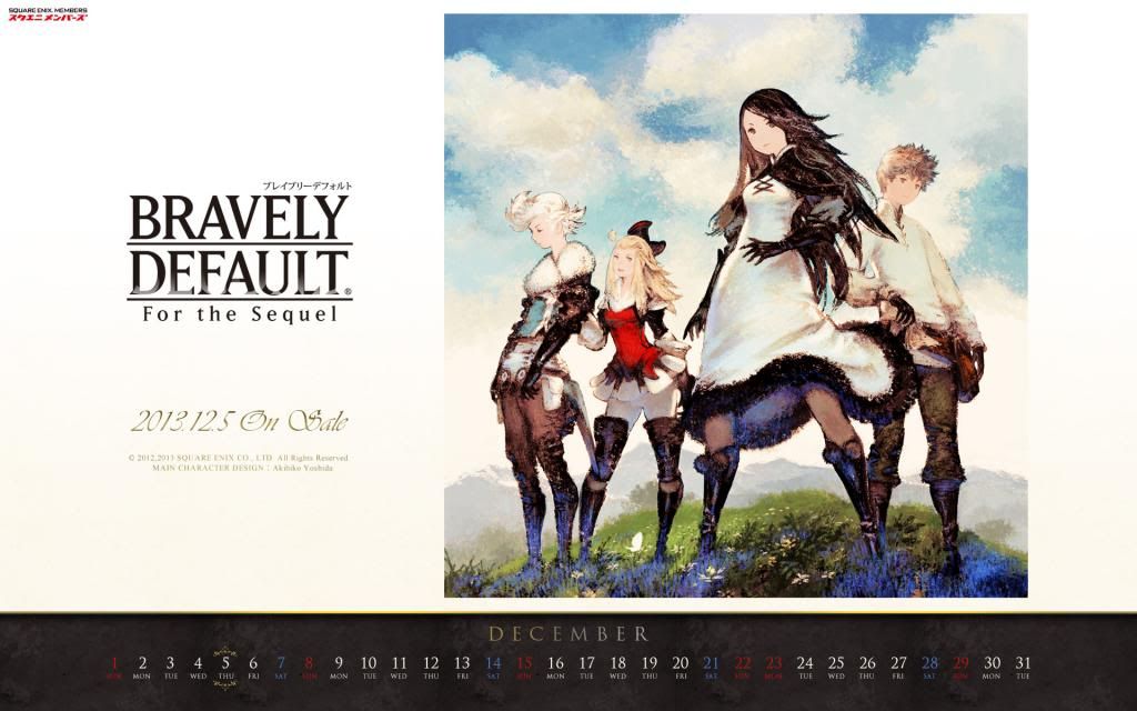 นอกจากนี้ทางค่ายยังได้อัพโหลด Wallpaper ปฏิทินประจำเดือนธันวาคม ซึ่งเดือนนี้เสนอรูป Bravely Default -For the Sequel-